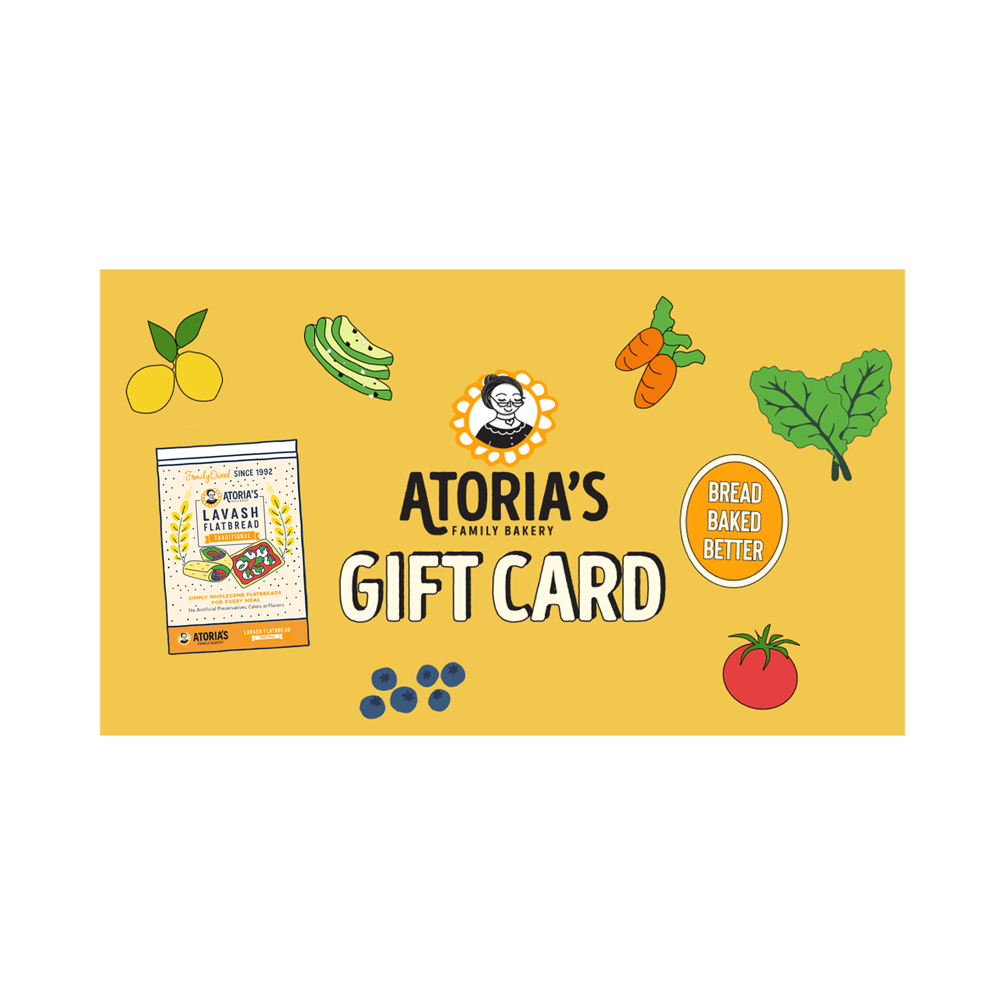 Give the gift of Atoria's Family Bakery flatbreads with our digital gift card — a perfect treat for food lovers, home cooks, and anyone who values simple ingredients and time-honored recipes.