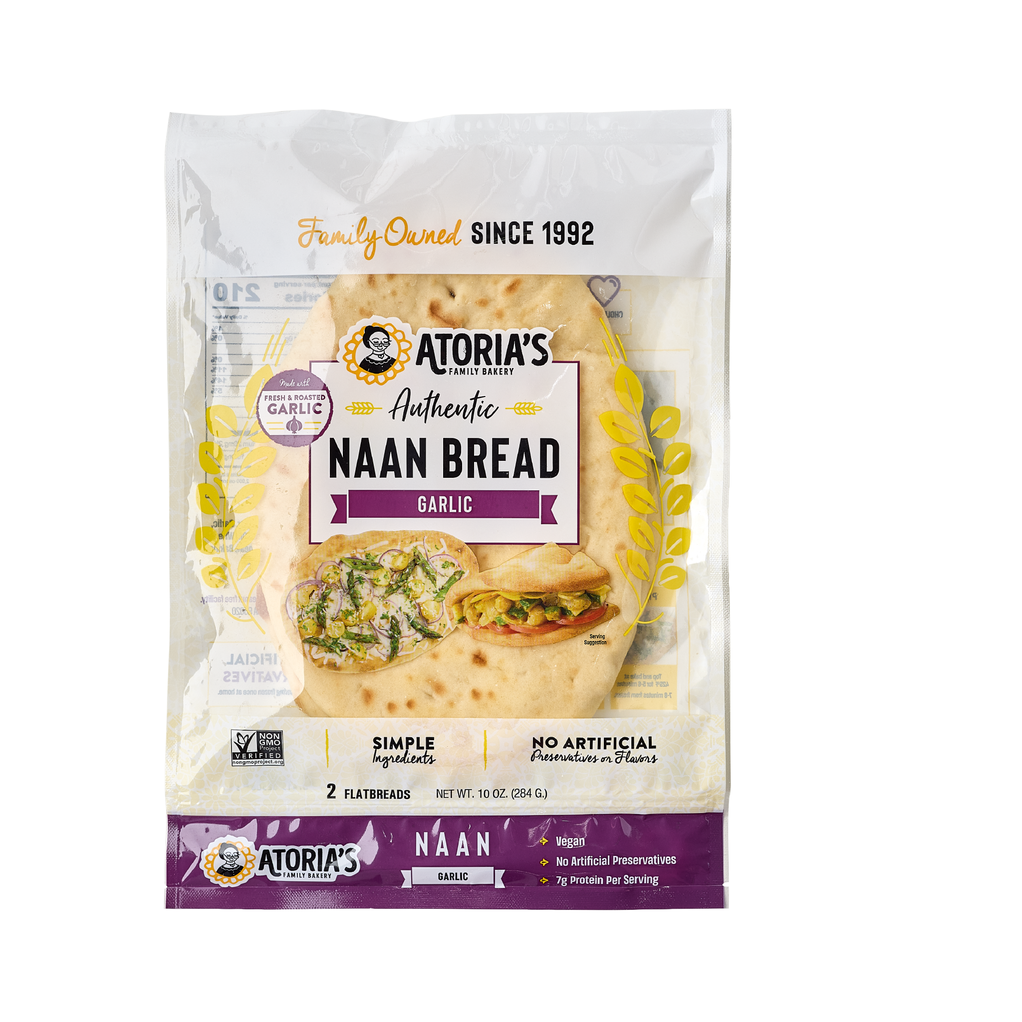 We blended the best of our fan-favorite Naan with roasted garlic to create this savory delight. The flatbread is soft and pillowy with a slightly crisp exterior and a perfectly garlicky flavor. Warm it up and pull it apart to make any meal more satisfying.