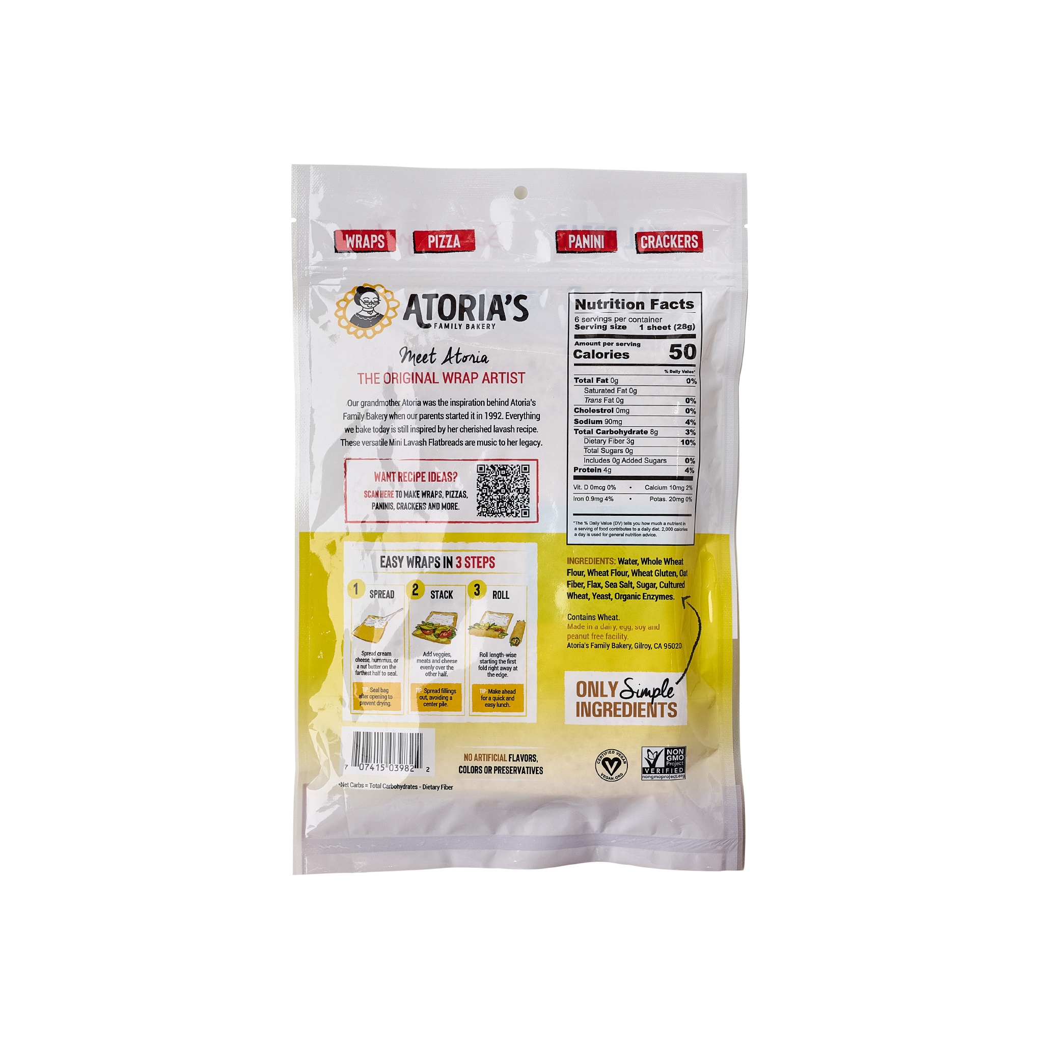 We’ve taken our best-selling Lavash and enriched it with the nutritional benefits and hearty, filling taste of Whole Grain and Flax. This personal-sized flatbread is as satiating as it is soft and chewy, with a nutty and toasty essence that does not overpower the other flavors.