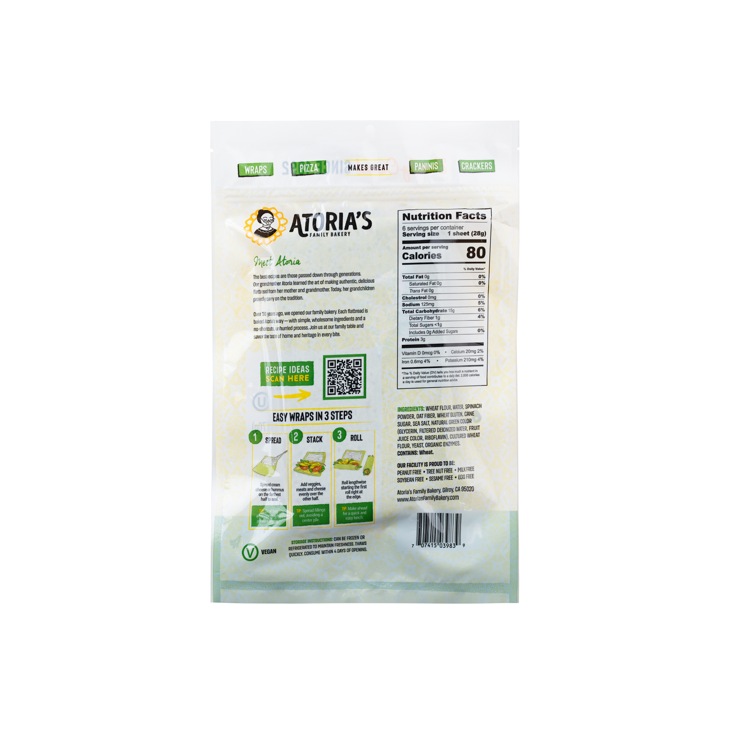We’ve taken our best-selling Lavash and baked it with the vibrant, wholesome goodness of spinach. This perfectly portioned, personal-sized flatbread is soft, thin, and flavorful — a nutritious choice without artificial colors, flavors, or preservatives. Balanced and versatile, Mini Spinach Lavash is the ideal size for wraps, pinwheels, sandwiches, or enjoying alongside your favorite meals.