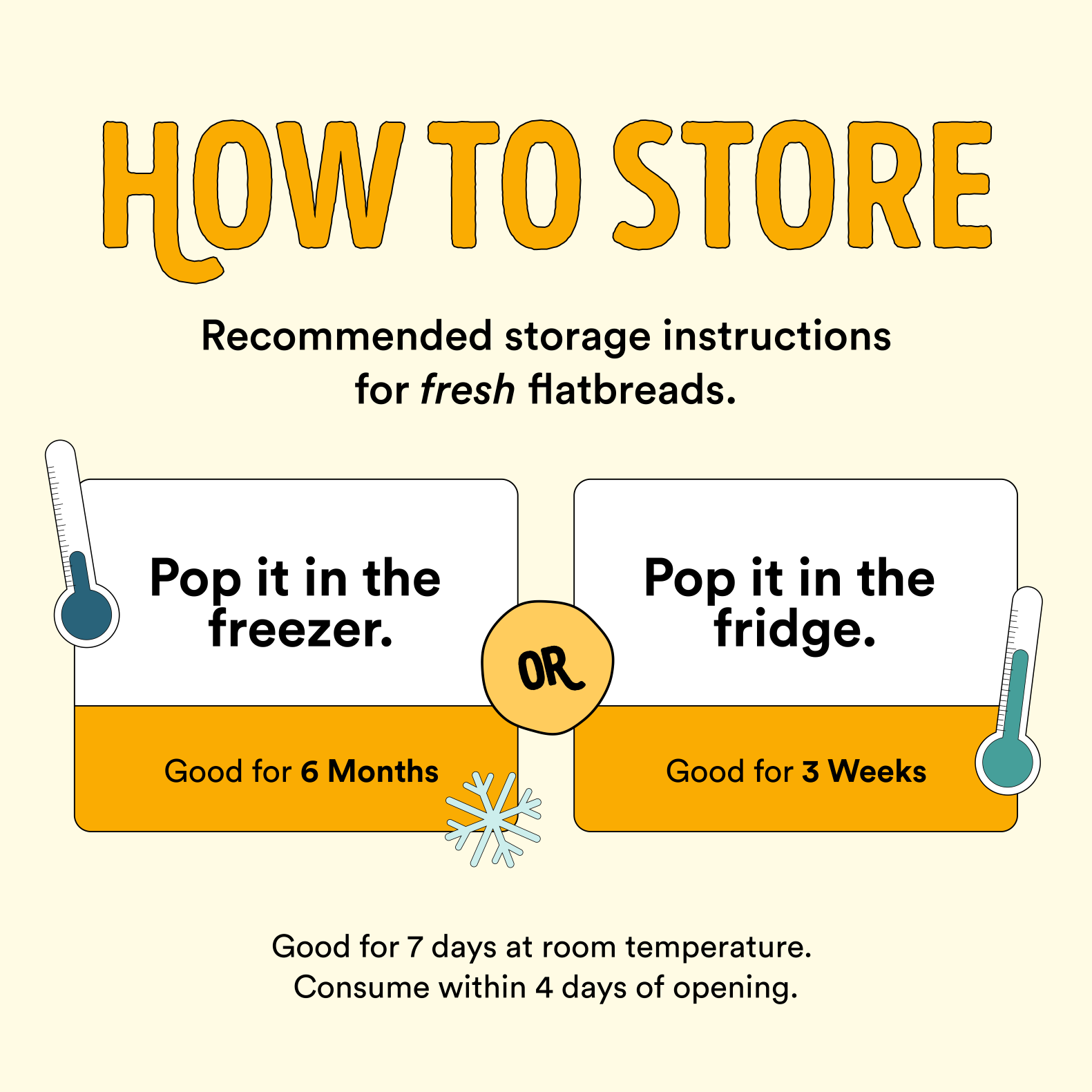 Pop in the freezer upon arrival (good for 6 months frozen), or in the fridge (good for 3 weeks refrigerated). All online orders are good for 7 days at room temperature. Consume within 4 days of opening. Occupies minimal space, thaws in minutes.
